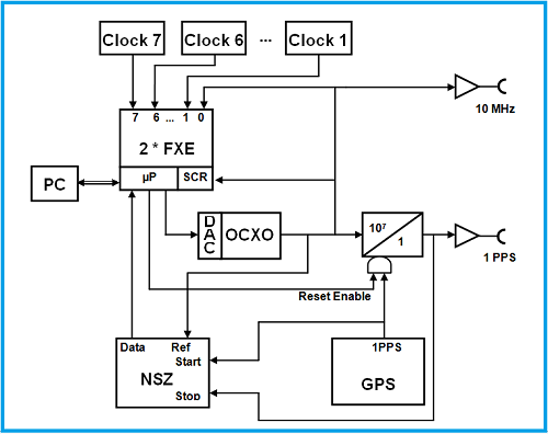 接收的时间信号由基于OCXO(或铷振荡器)的附加控制电路稳定。以这种方式,可以产生频率参考输出信号,该信号对于短期和长期测量来说非常稳定。