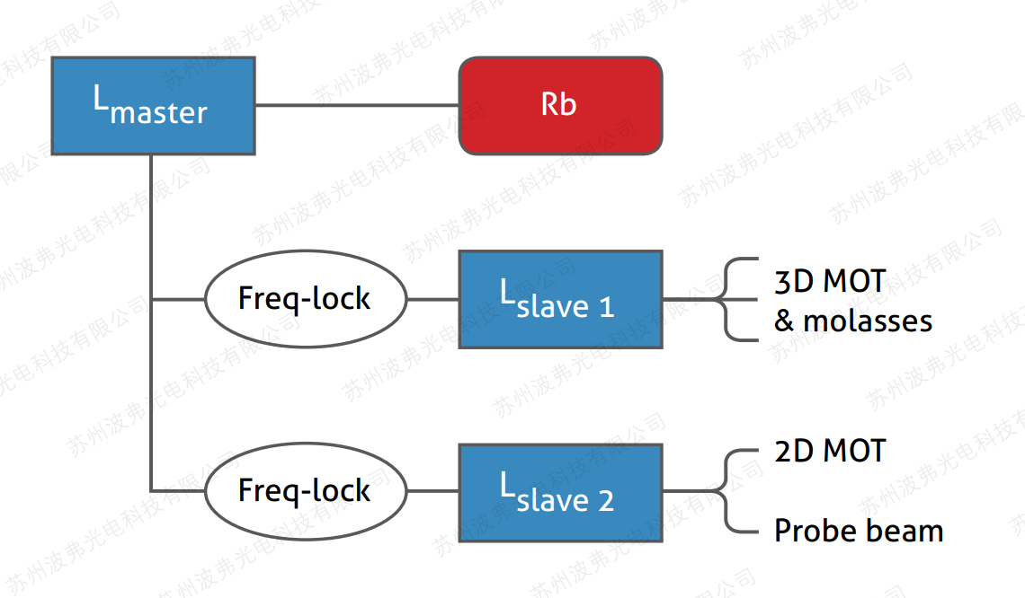 激光系统基于利用激光器,频率锁定到主激光器,其频率使用原子跃迁稳定饱和吸收光谱。我们的激光系统配备有专用提供以下电子产品: