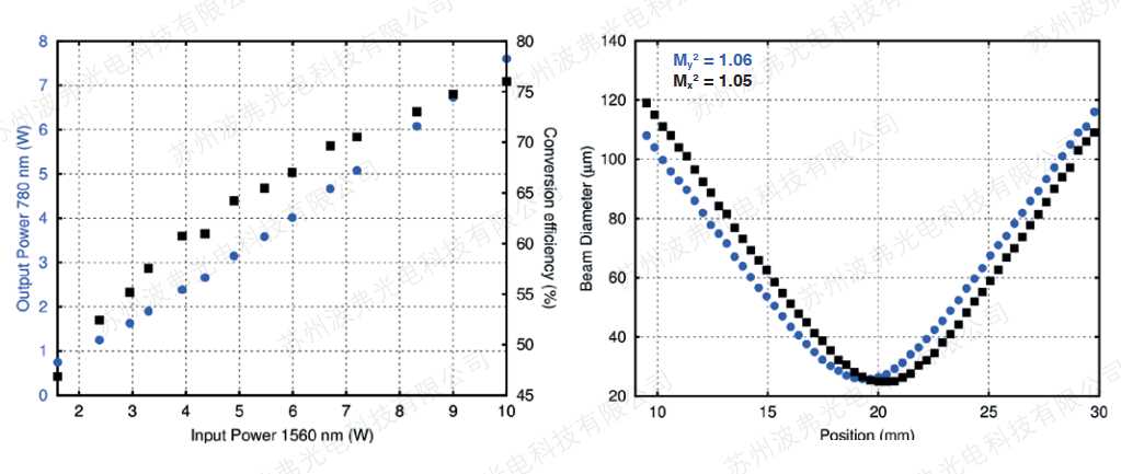 Muquans提供了极具吸引力的方式来获得超过5 W的光功率范围[765 nm; 805 nm],转换效率超过70%。这个高功率高效率光倍频模块具有高质量的输出光束并显示出卓越的稳定性。这种独立的倍频模块依赖于放置在工作在基本波长的谐振腔。这个独特的组件基于在初始和获得专利的架构上,可以无论输入光功率水平如何实现出色的转换,效率都很高。数百MHz快速可调性,强大且主动的稳定方案赋予光倍频模块优异稳定性。