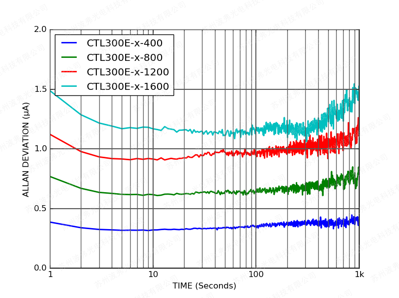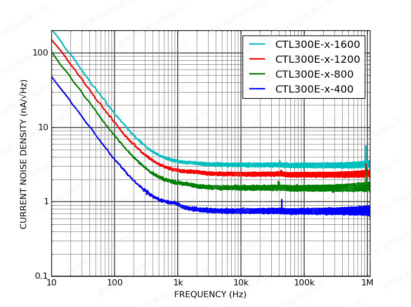 下图显示了CTL300E控制器在额定电流和600 mV激光驱动器压降下工作的电流噪声密度。